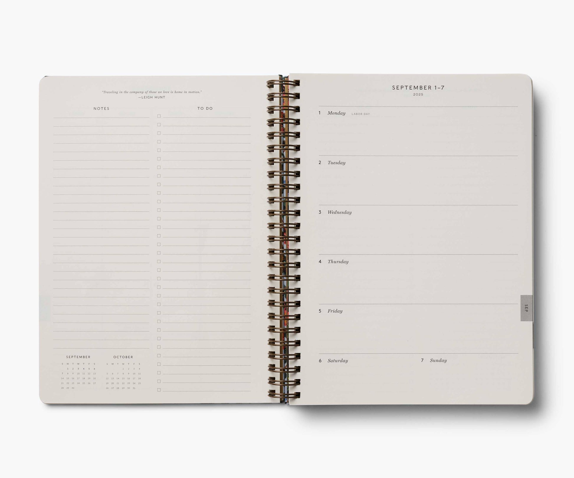 This extended, 17-month version of our softcover spiral planner features a printed bookcloth cover with gold foil detailing. In addition to weekly and monthly views, the planner includes space for weekly notes, a list of celebrations, and pockets for storage. Planner spans August 2025 - December 2026.