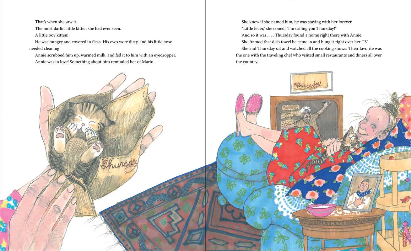 [Paula Wiseman Books] From critically acclaimed author Patricia Polacco comes a heartwarming story about a girl named Annie, her lucky Thursdays, and a special cat who comes into her life just in time to make everything right. Thursdays have always been lucky for Annie Fetlock. She was born on a Thursday. She won her first cooking contest at the age of eight on a Thursday. She met the love of her life, Mario, on a Thursday. They were married on a bright Thursday afternoon and their two children were both born on a Thursday. Annie is known far and wide for her Poke Pasta Salad and has the most popular restaurant for miles around. When Mario suddenly passes away, Annie’s joy and love of cooking disappears. Before too long, a little kitty appears and Annie takes the kitty in, and, of course, calls it Thursday.