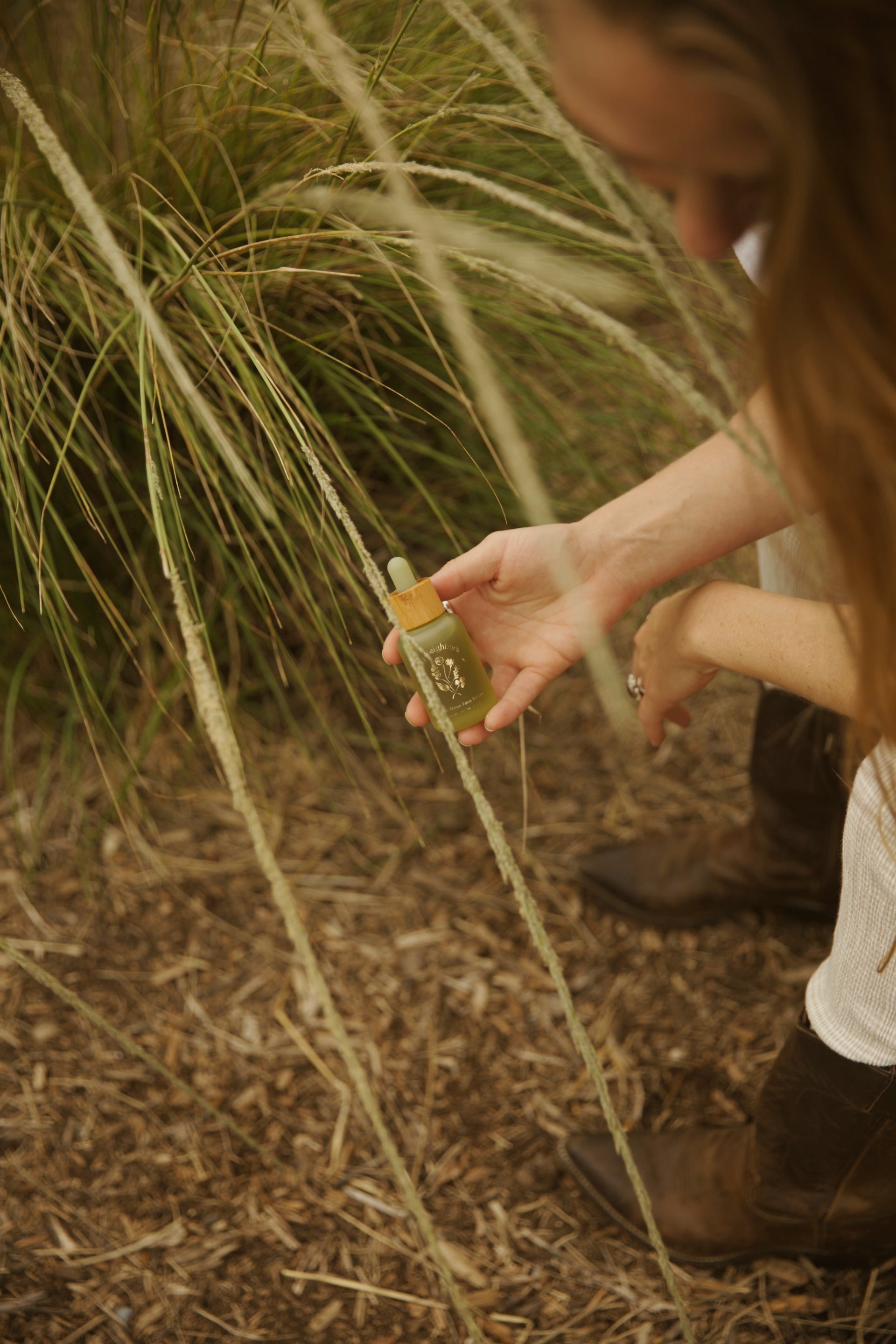 Crafted with a potent blend of organic, non-GMO oils—jojoba, rosehip, seabuckthorn, carrot seed, vitamin E, and blue tansy—this lightweight serum deeply hydrates, calms inflammation, and restores balance to stressed or sensitive skin.