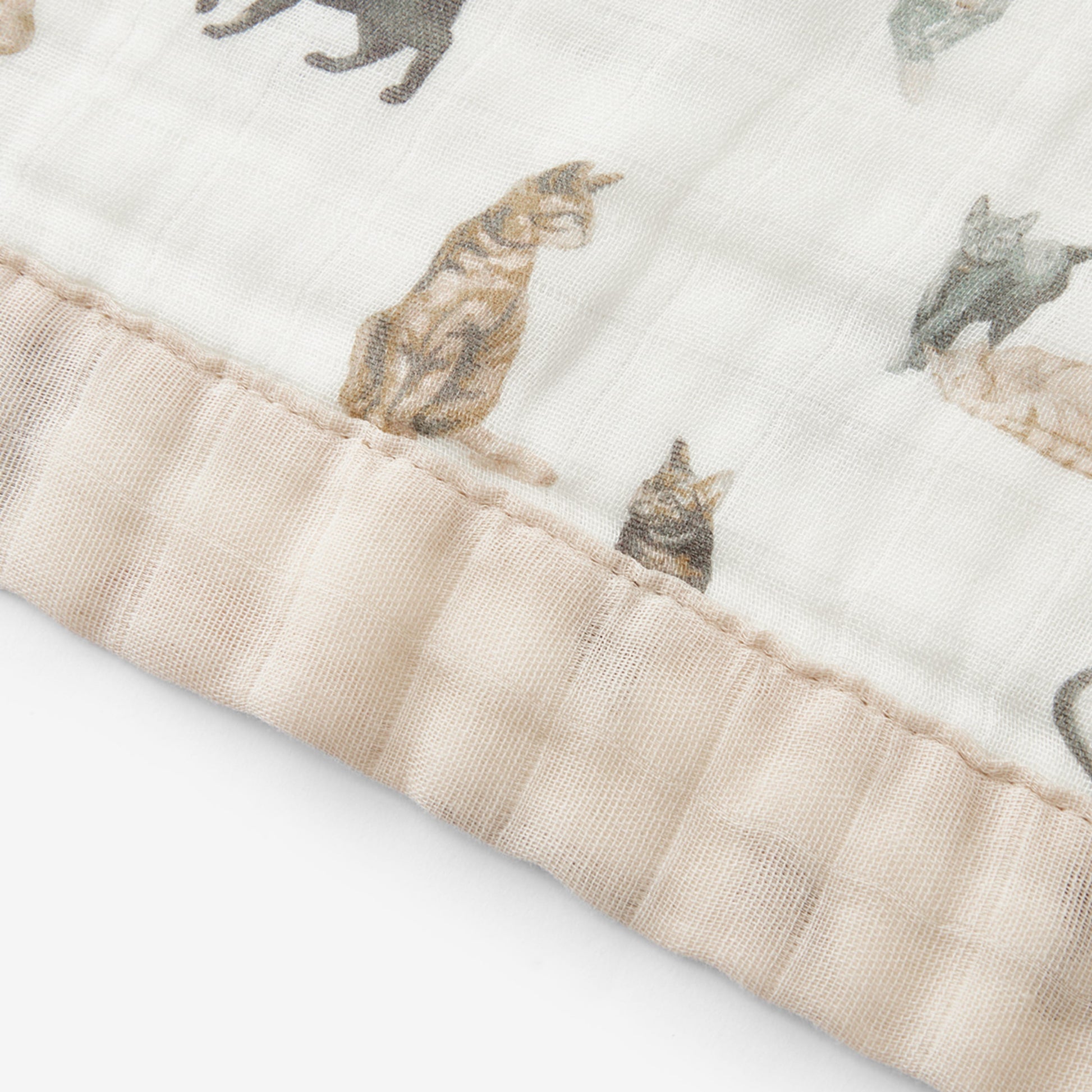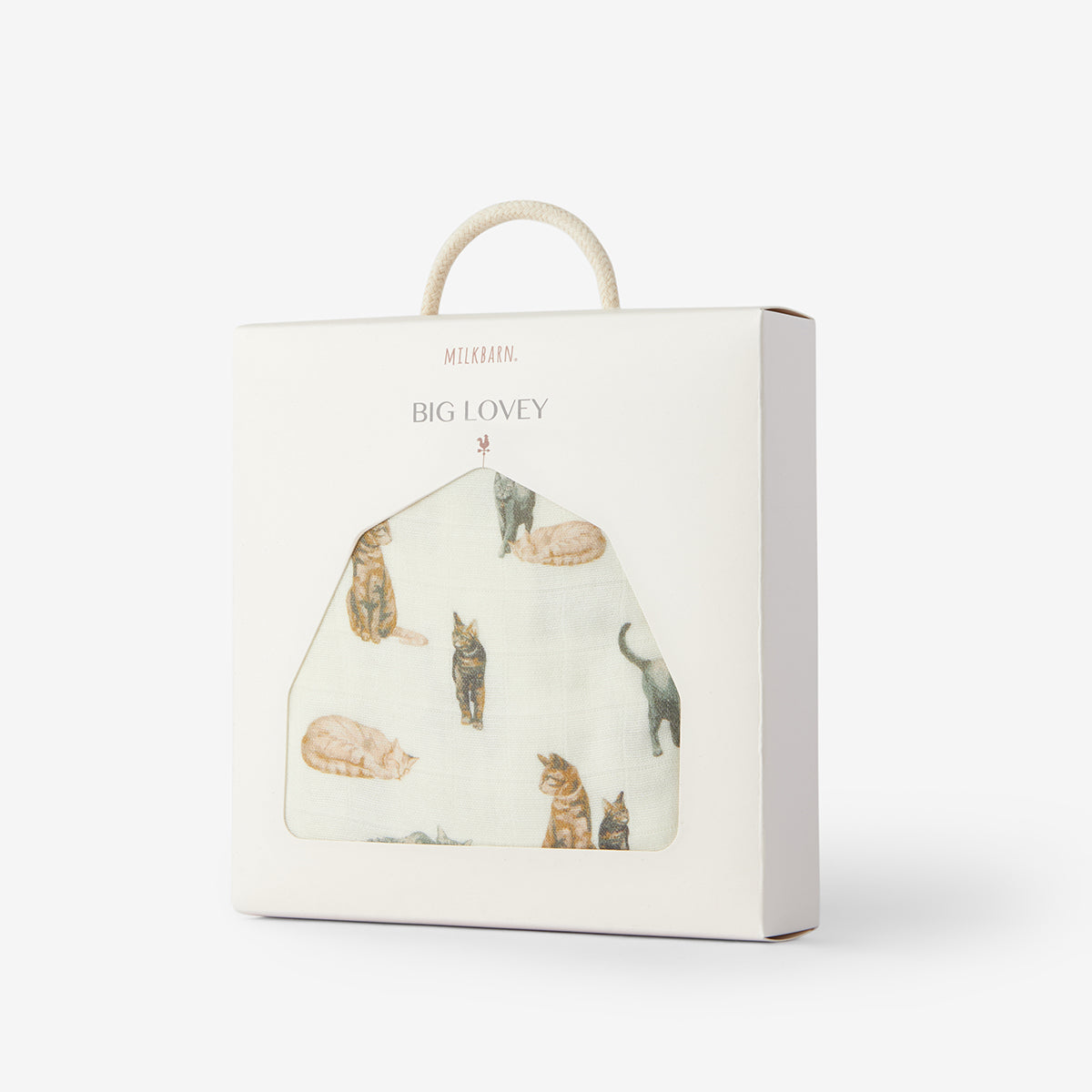 The ultimate in comfort, our generously sized Big Lovey Muslin Blanket in the Cat print allows for extra snuggles and cuddles.
