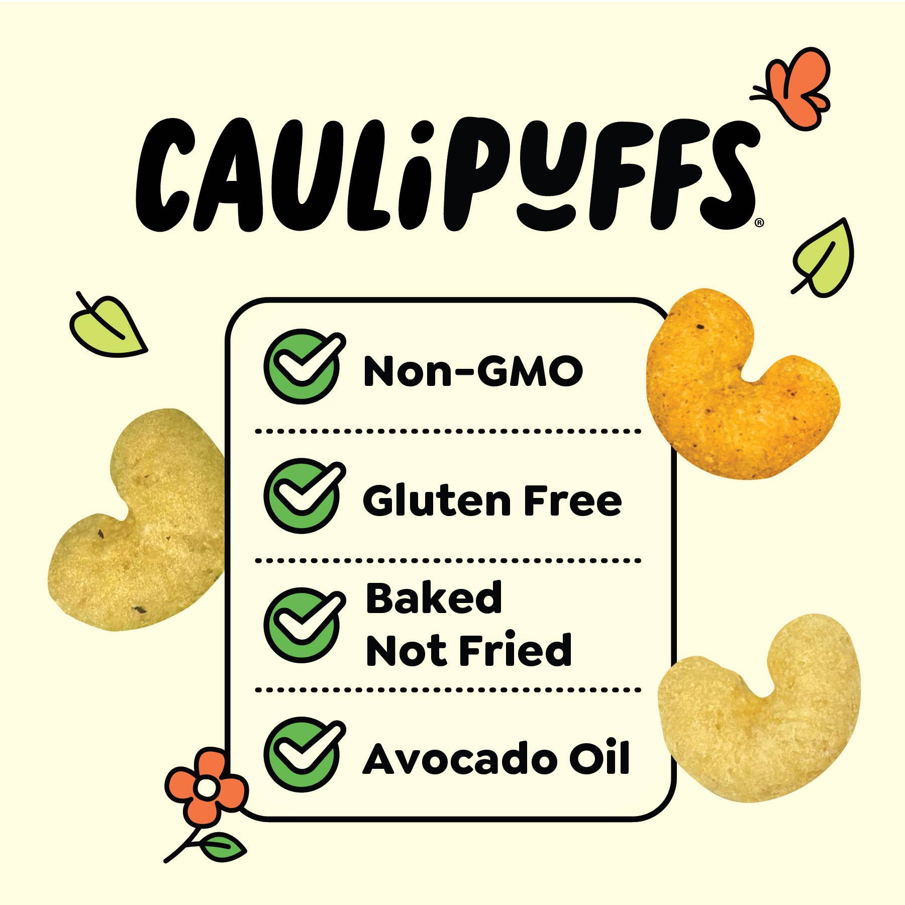 Introducing our irresistible White Cheddar Cauliflower Puffs! Made with REAL delicious cheese, wholesome ingredients, and tossed in avocado oil, these puffs are a nostalgic snack with a healthy twist. Our White Cheddar Cauliflower Puffs are made with clean ingredients, gluten-free, and contain no artificial flavors, colors, or preservatives. They are also lower in calories and sodium than traditional cheese doodles, making them a guilt-free snack that you can enjoy any time of day! Using only clean ingredients, CauliPuffs are baked, not fried, making them a healthier alternative to traditional snacks.