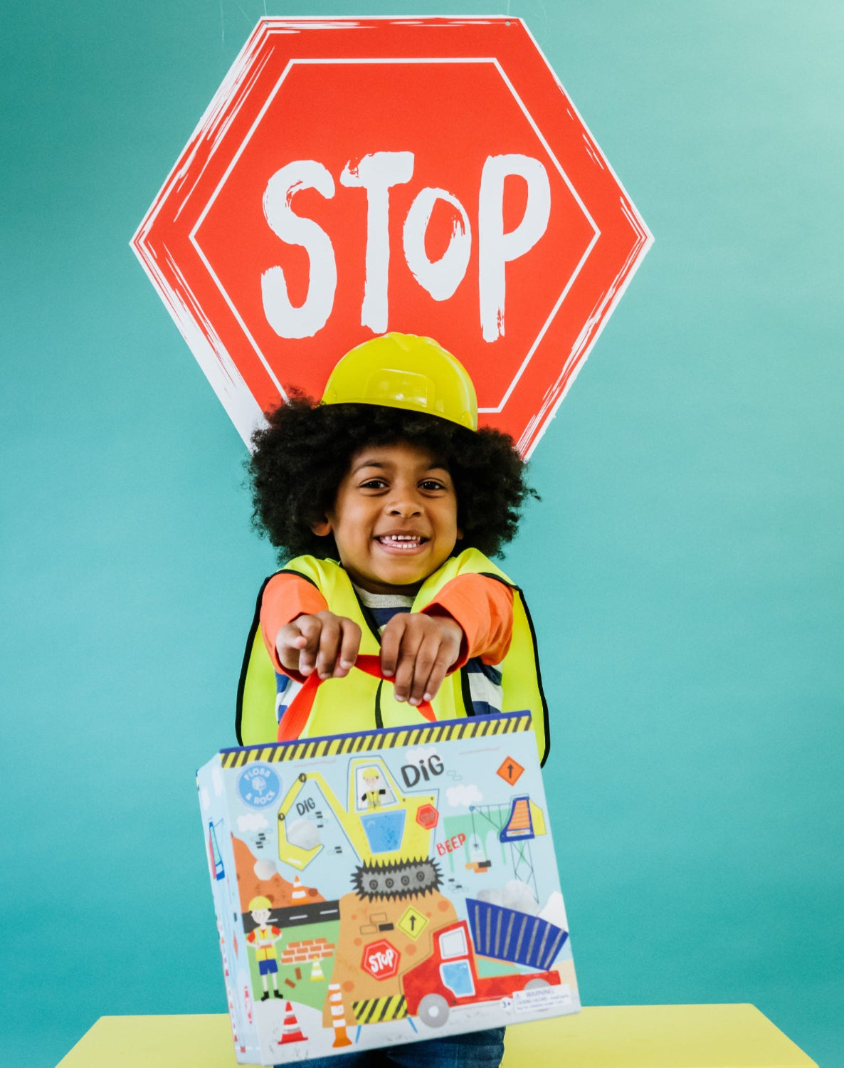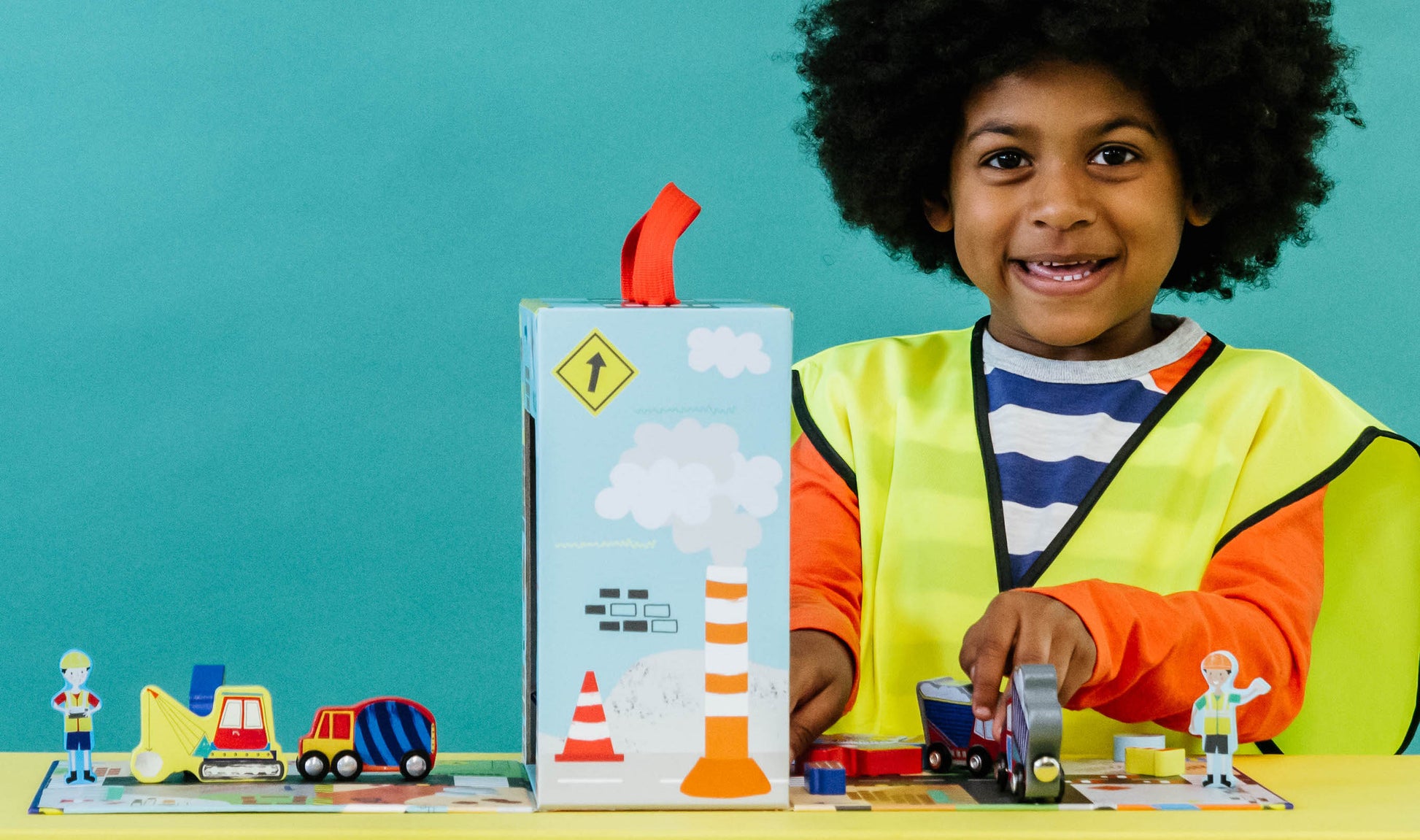 Beep beep, dig dig! Digger and construction enthusiasts will have so much fun with this brilliant playbox building site complete with traffic lights, stop signs, builders and much more. The sides flip down to reveal a cool construction play area, complete with a roof, arch and roads. The set comes with 15 quality, double sided wooden pieces (including four trucks and diggers that can whizz around on wheels!) children will enjoy hours of imaginative play running a building site, moving diggers and materials through the arch to get the job done! Once play time’s over, keep all your pieces safe in the handy drawstring cotton bag and fold up either side of the box. Then, use the cool carry handle to take the playbox off on your next construction adventure!