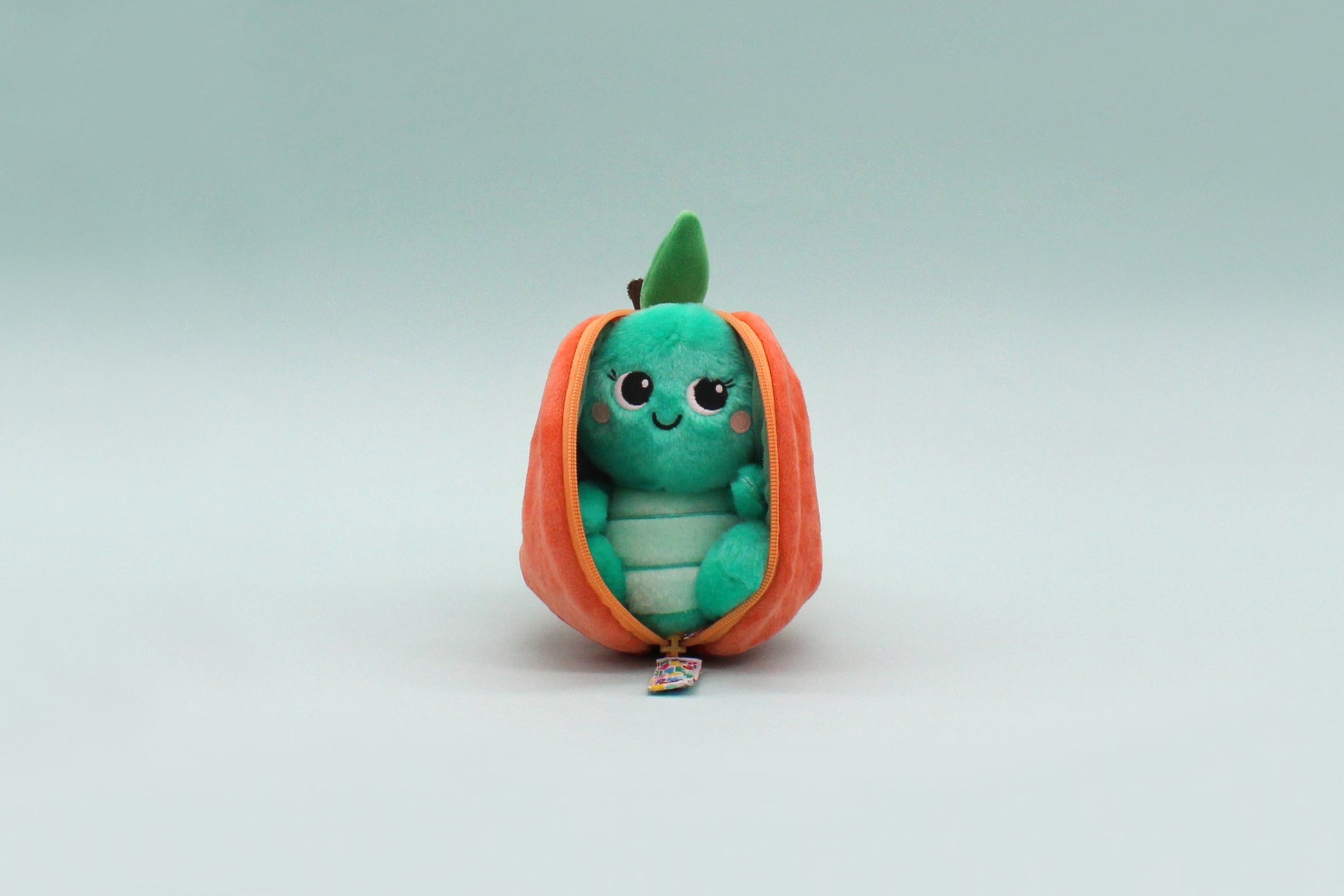 - The peach plush unzips to transform into a turtle with its shell