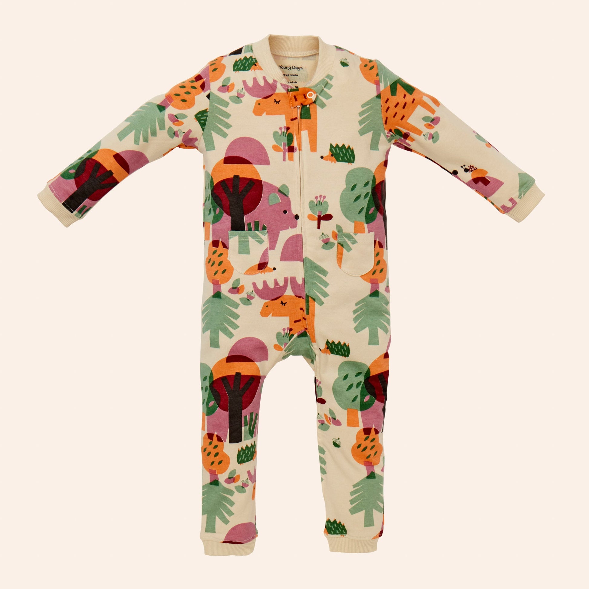 Our basic sleeper is one of our favorite pieces for a reason. The Davis sleeper is a one-and-done outfit that is perfect for naptime and playtime alike. Our whimsical and modern prints are made in organic cotton that has a bit of stretch that your little one is sure to love. A zipper down the front makes dressing and diaper changes a breeze.