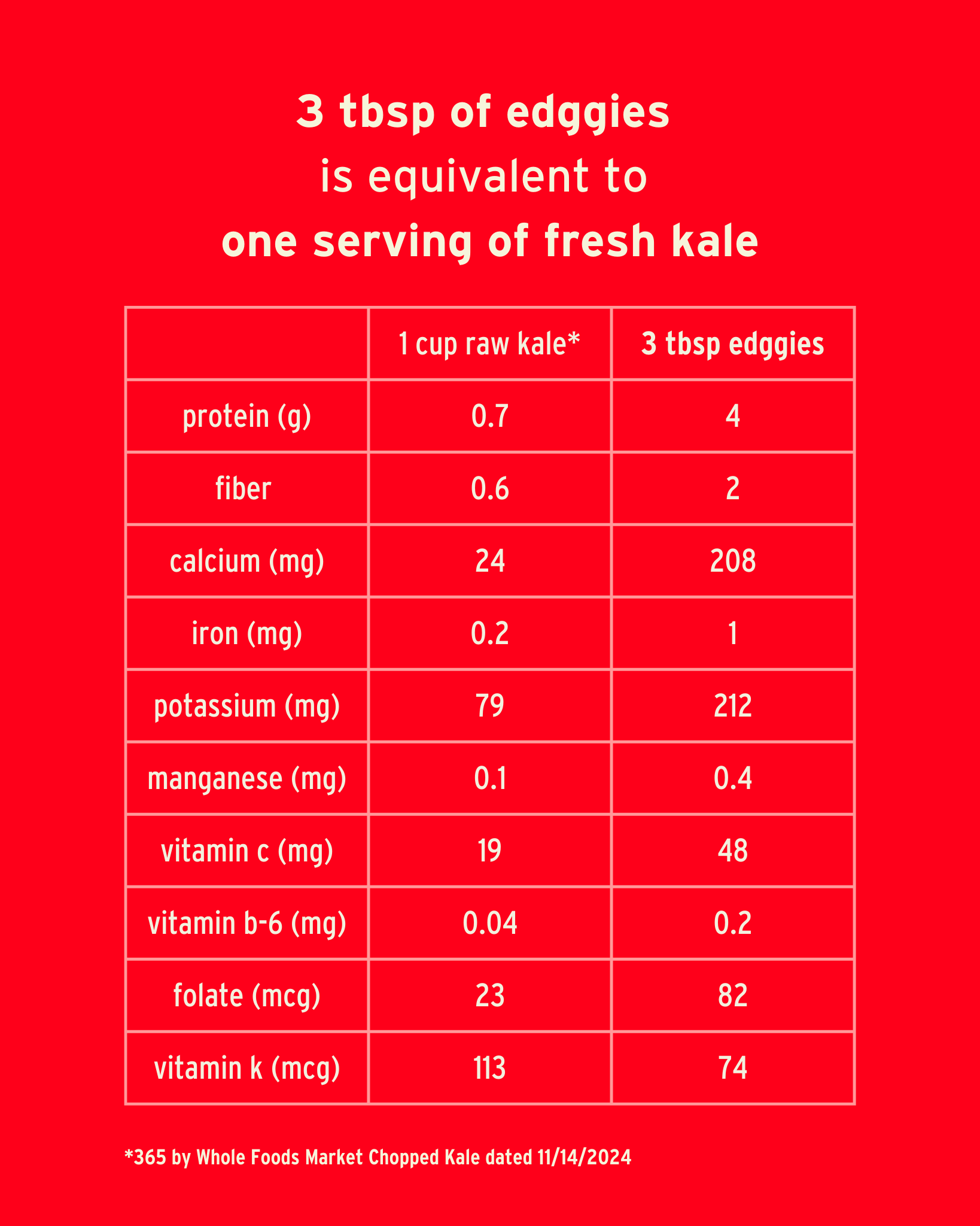 whether you're adding it to your morning smoothie, salad, or pasta, edggies makes it easy to stay healthy no matter what you're craving.