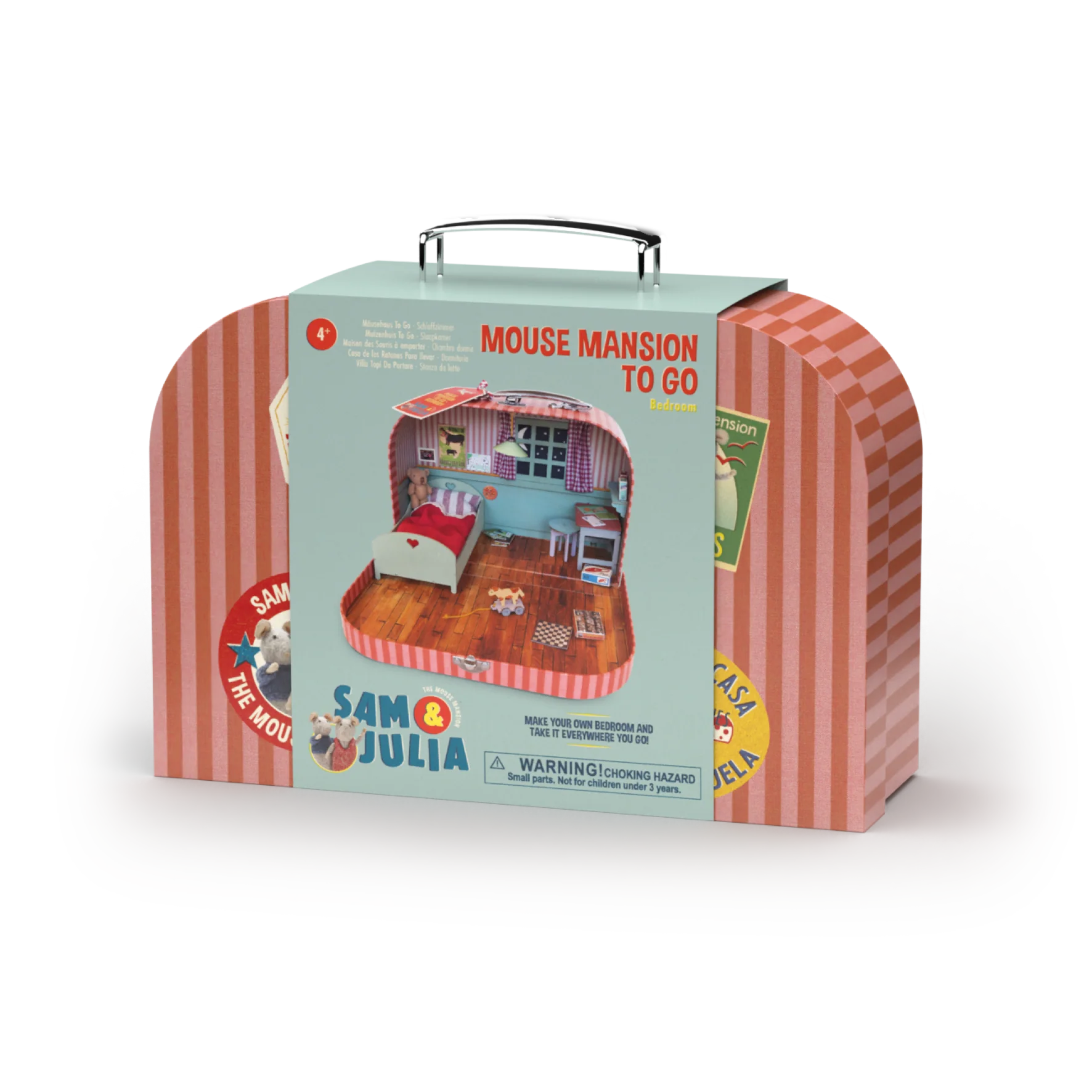 Take Sam and Julia everywhere you go in this fun little suitcase. Of course, you assemble this bedroom 'to go' yourself. This suitcase was designed by Karina Schaapman, the creator of the original Mouse Mansion.