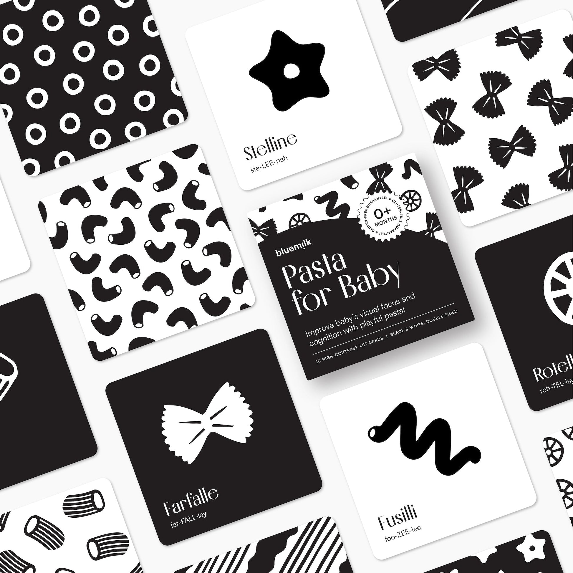 Pasta for Baby - Help baby memorize several unique pasta shapes before they get to the dinner table. The high-contrast art cards, ten pc 20 page black and white visual stimulation sensory learning activity flash cards for newborns to toddlers. Interact and learn Italian pronunciation with baby, exposing them to contrasting repeating patterns to nurture visual development and build concentration.