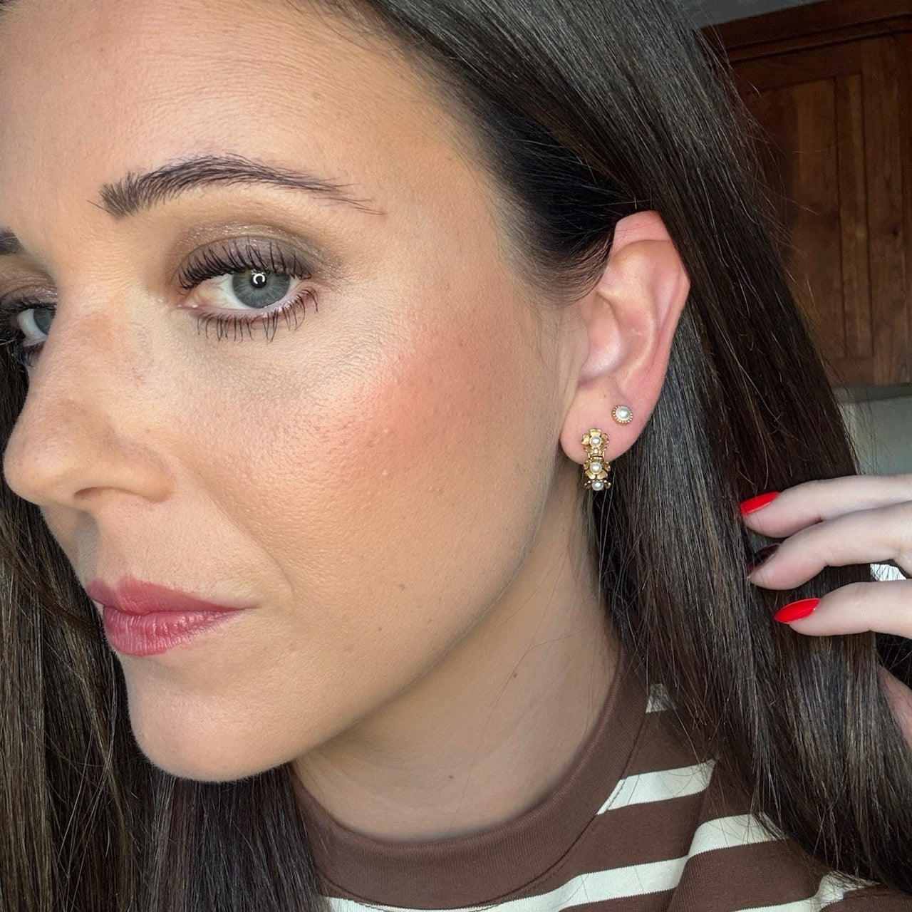 Pearl Flower Chunky 3D Huggie Hoop Earrings