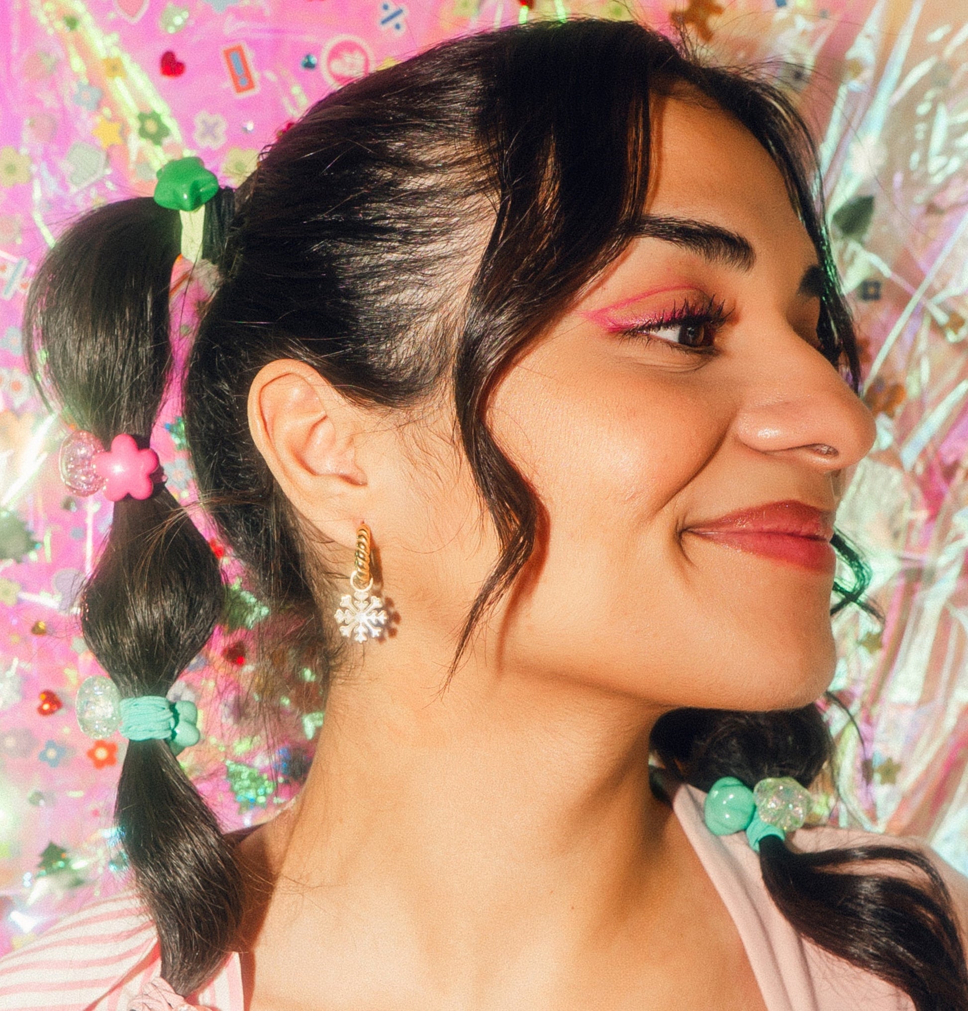 Pearlescent Snowflake Chunky Huggie Hoop Charms