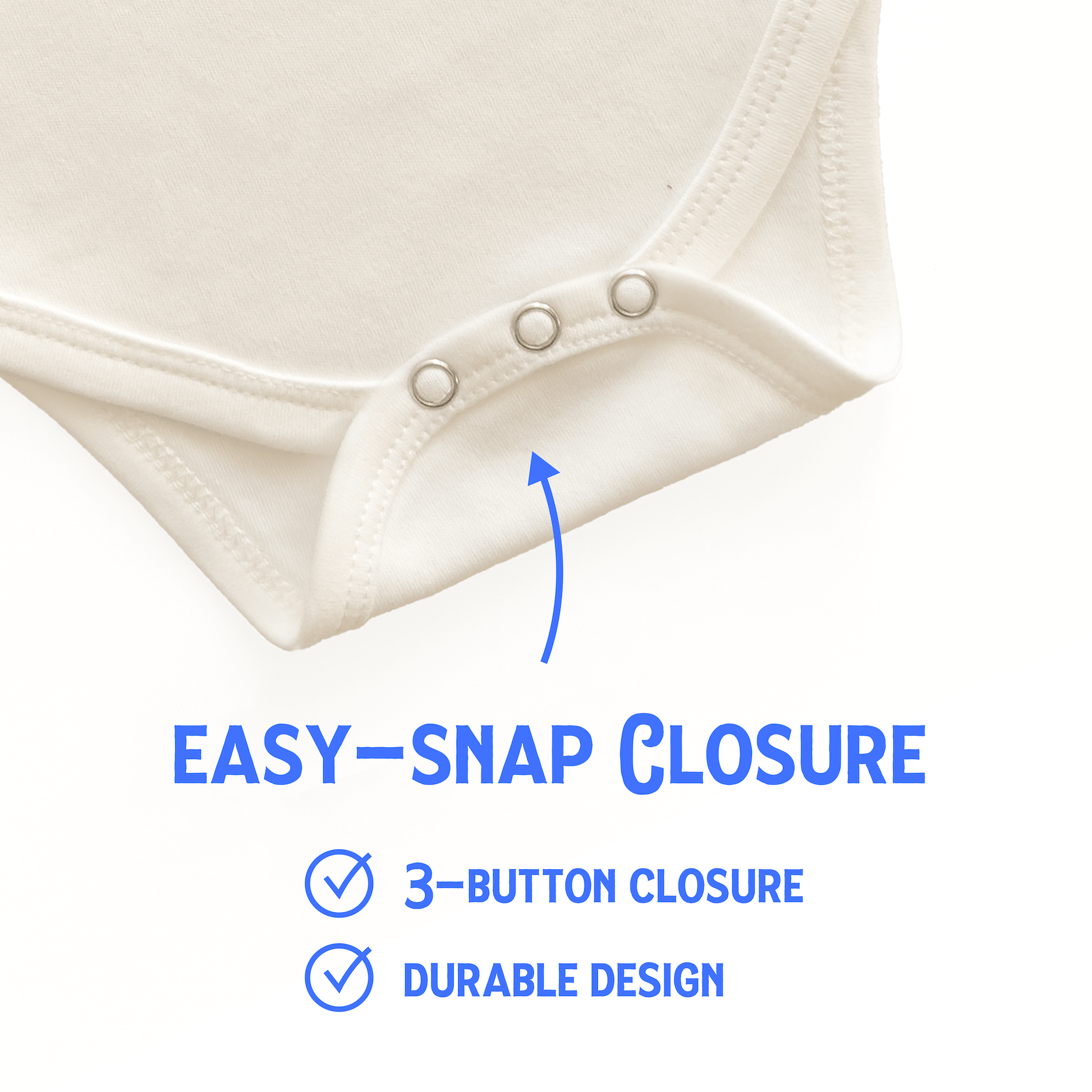 Easy Snap Closure - 3 buttons secure the bodysuit over a diaper, holding the shirt securly under pants or overalls. A great option for your baby clothes!