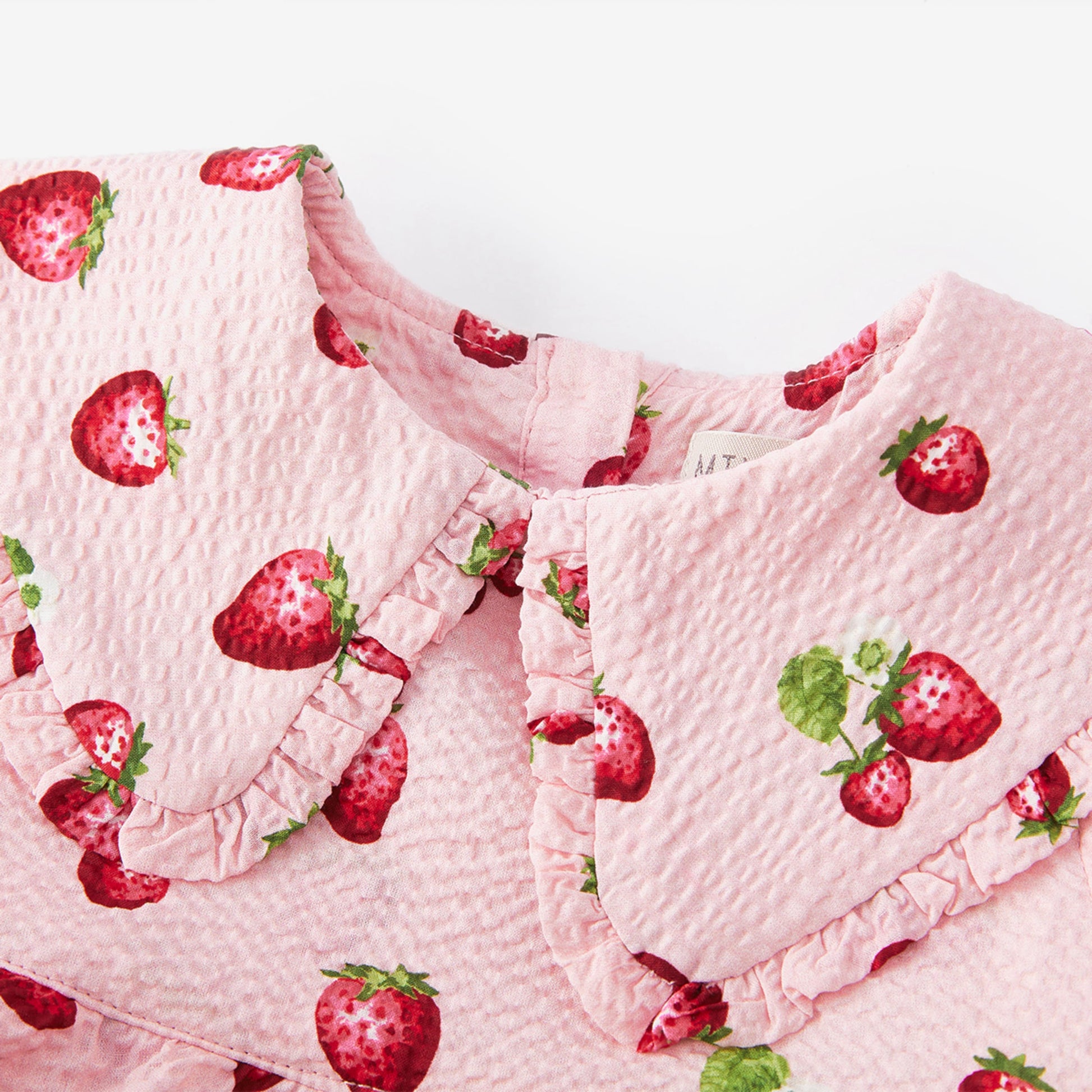 Keep our Strawberry Ruffle Collar One Piece close by for special occasions. The ruffled collar of this piece will perfectly frame your little one's adorable face, and help share their smile with the world. Complete this look with one of Milkbarn's iconic headbands.